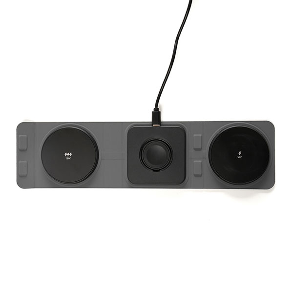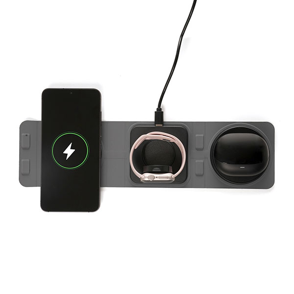 Charges your watch, telephone and earbuds simultaneously